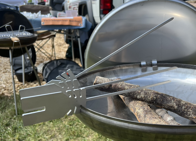 You simply hang our barbecue skewer „FyrSkewer“ in the edge of our FyrBowl. Different inclinations can be used and the skewer can also be stored on the front of the FyrBowl Bag. It's another very useful accessory for your next BBQ experience!